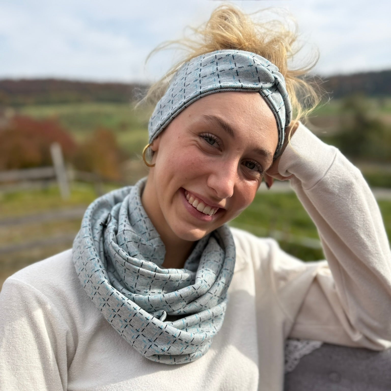 Das Stirnband "Nebelschleier" aus feiner Bio-Baumwolle hält dich wunderbar warm in der kalten Jahreszeit. Von Hand genäht in Schwaben, verbindet es nachhaltige Qualität mit liebevollem Handwerk. Der perfekte Begleiter für dein Herbst- und Winteroutfit!