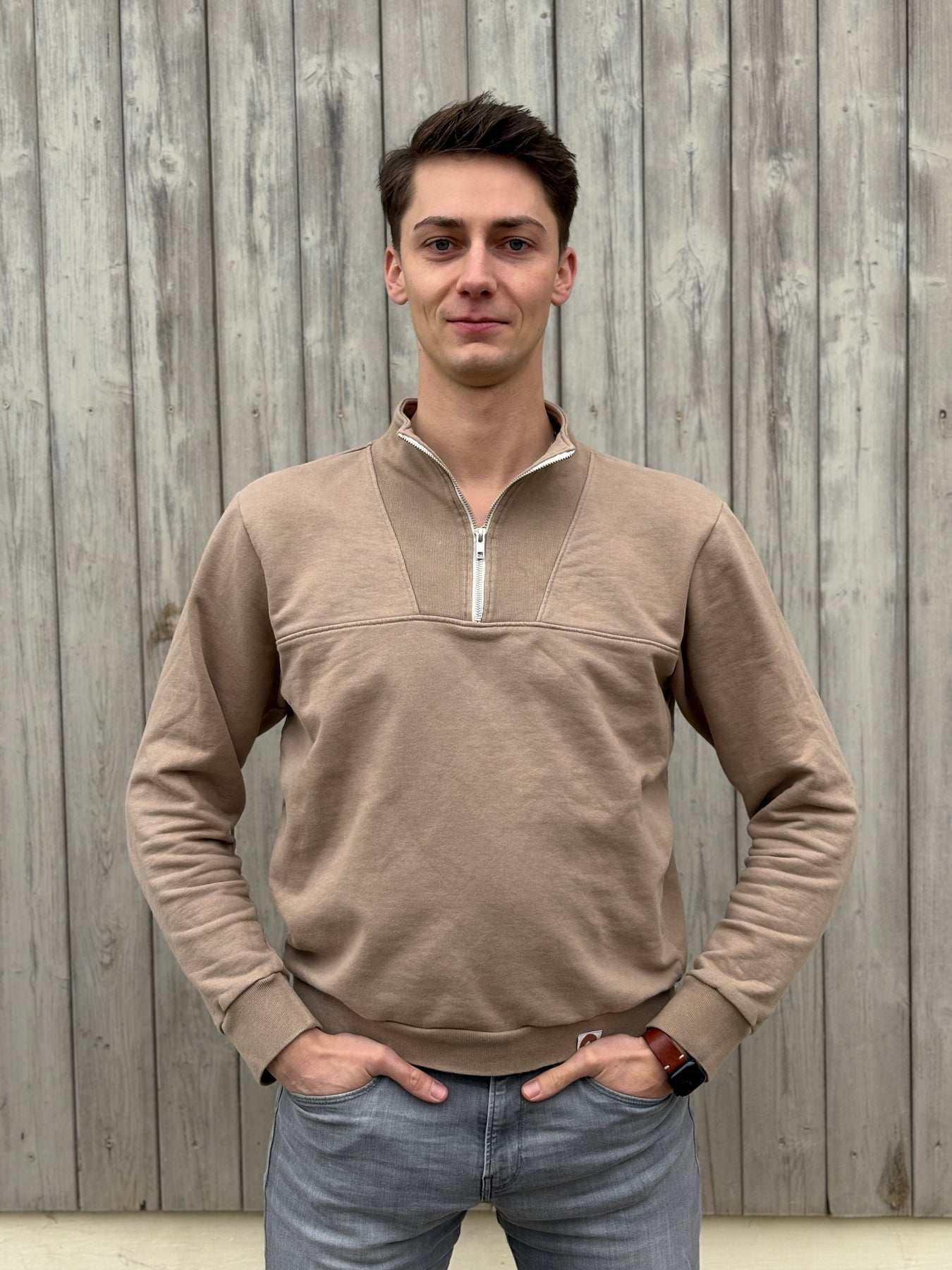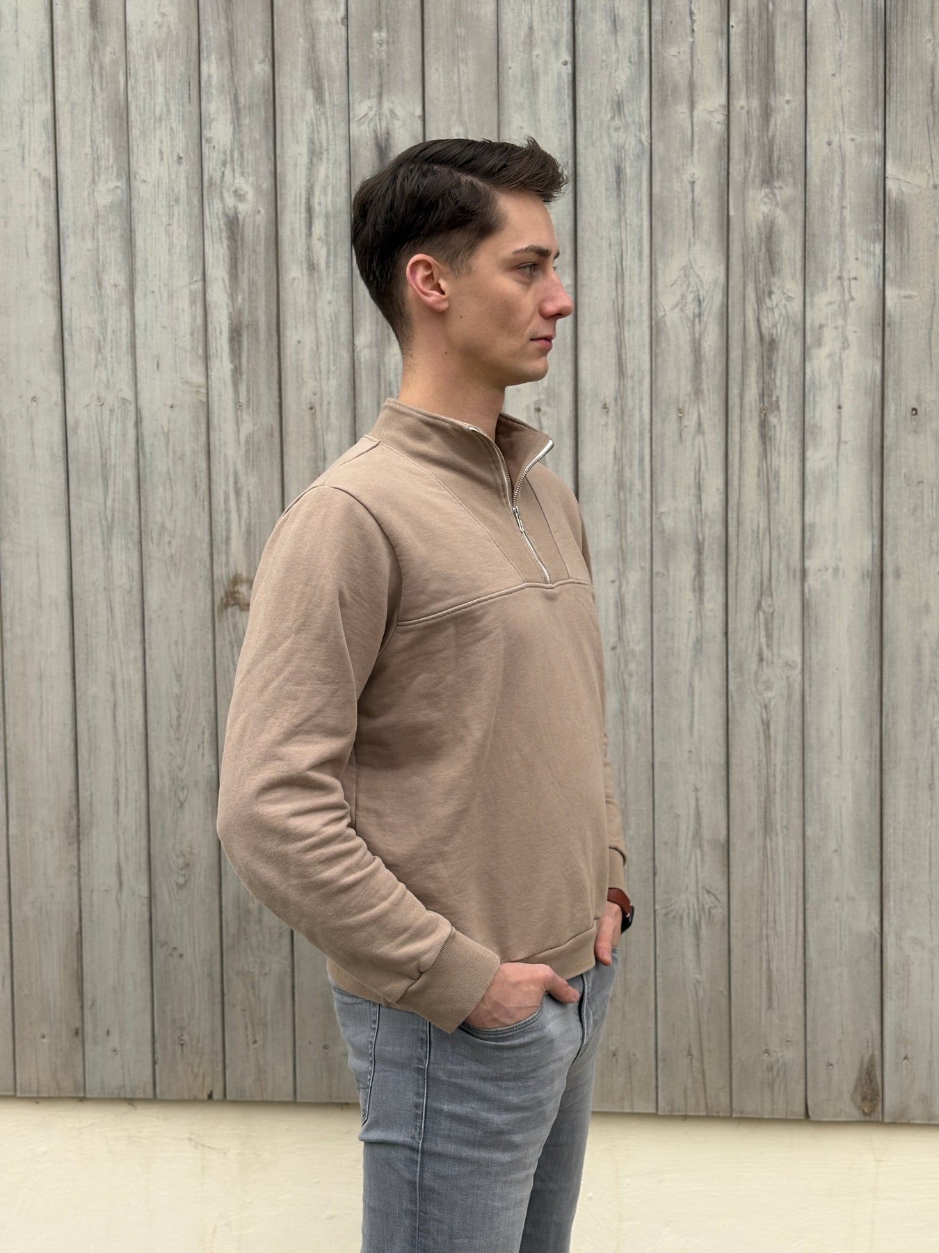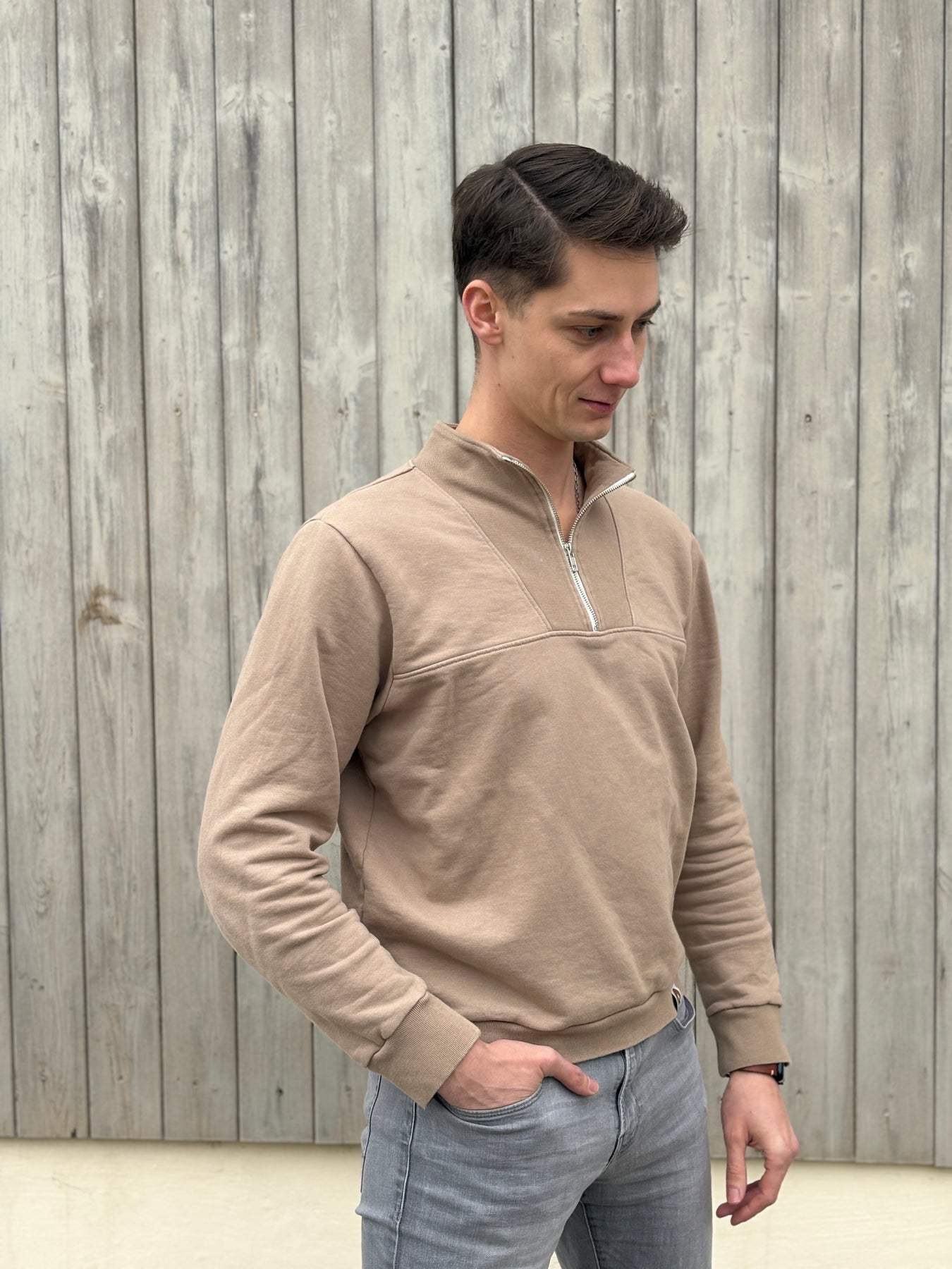 Unser Troyer "Toni" ist ein echtes Handwerk-Stück! Jedes Teil wird liebevoll auf der Schwäbischen Alb selbst genäht – aus GOTS-zertifiziertem Bio-Baumwollstoff, der sich herrlich weich anfühlt. Die wärmende Mokka-Mousse-Farbe passt zu allem und macht einfach gute Laune. Perfekt für gemütliche Tage. Nachhaltigkeit, die man spürt!